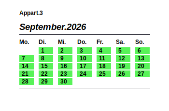 Buchen : Blaues Feld ist An- / Abreisetag,