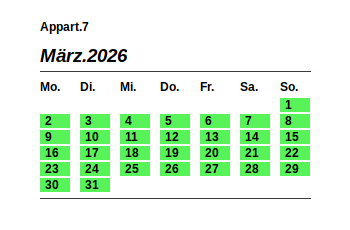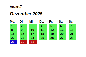 Buchen : Blaues Feld ist An- / Abreisetag,